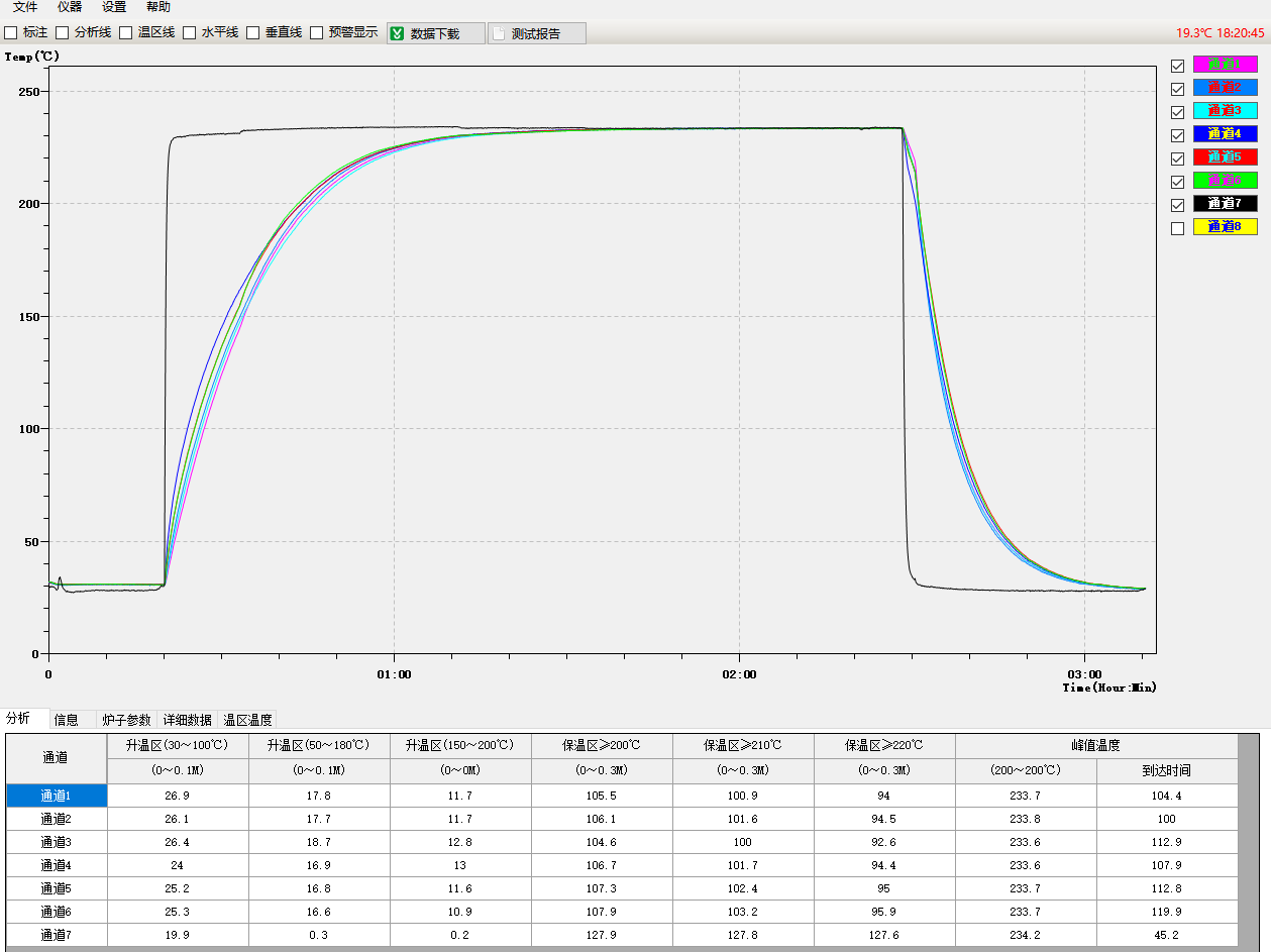 12、曲線上可任意設(shè)定橫線標(biāo)注,更加直觀顯示某個溫度點(diǎn)的各個曲線時間狀